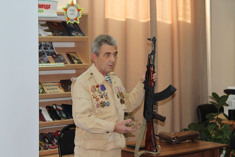 Урок патриотизма был посвящен жизни и героическим подвигам М.Т.Калашникова. Был показан отрывок из фильма «Калашников». Библиотекари рассказали о трудных этапах становления воина- изобретателя до высокого звания Мастера, и о том, как Михаил Тимофеевич заслужил звание Героя России и дважды Героя Социалистического Труда. Автомат