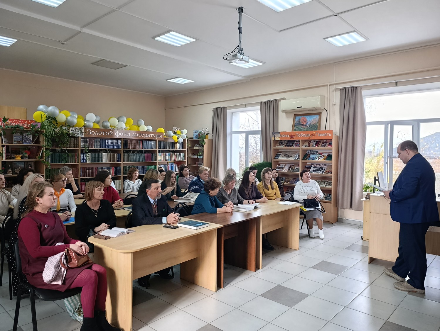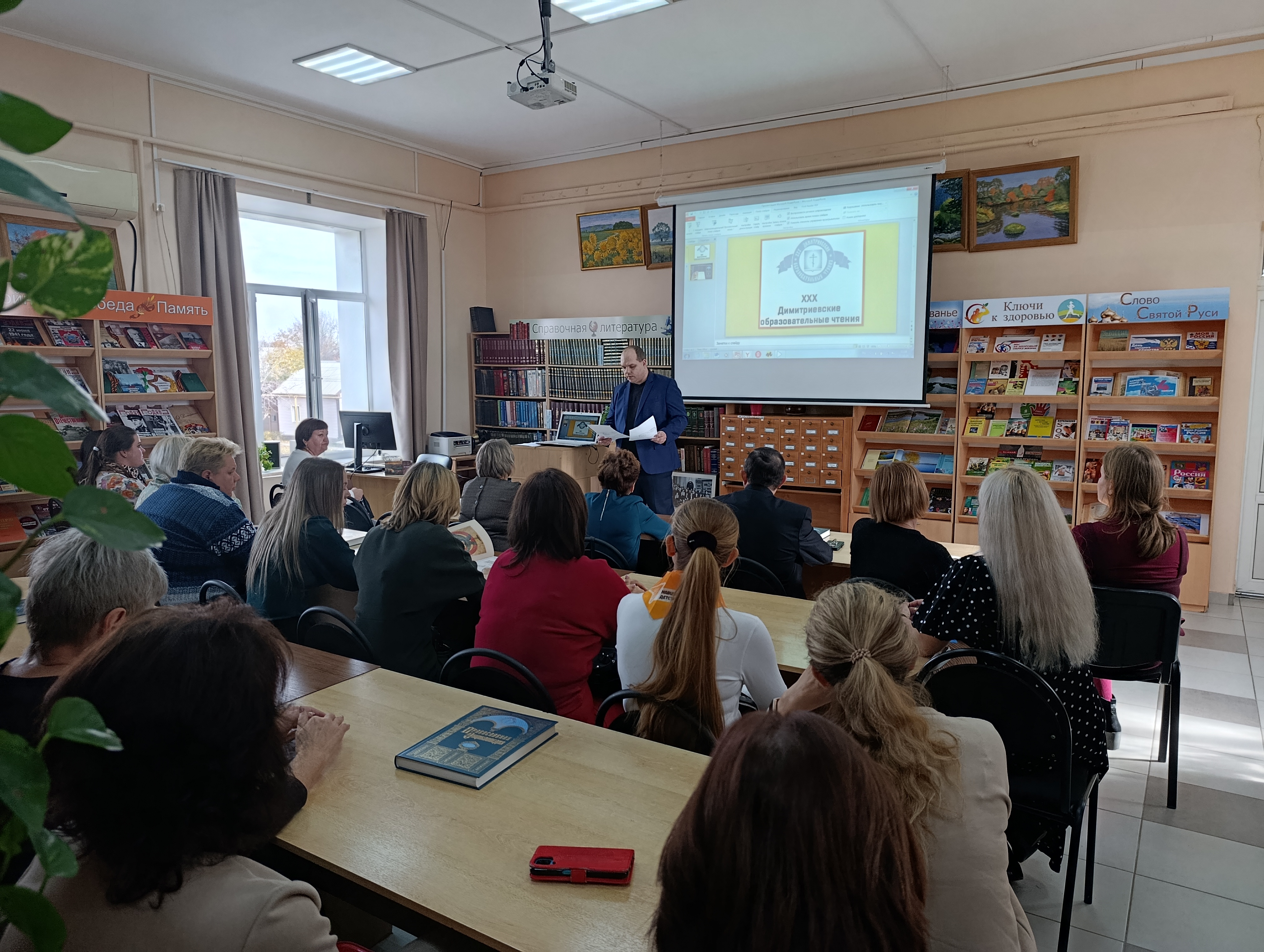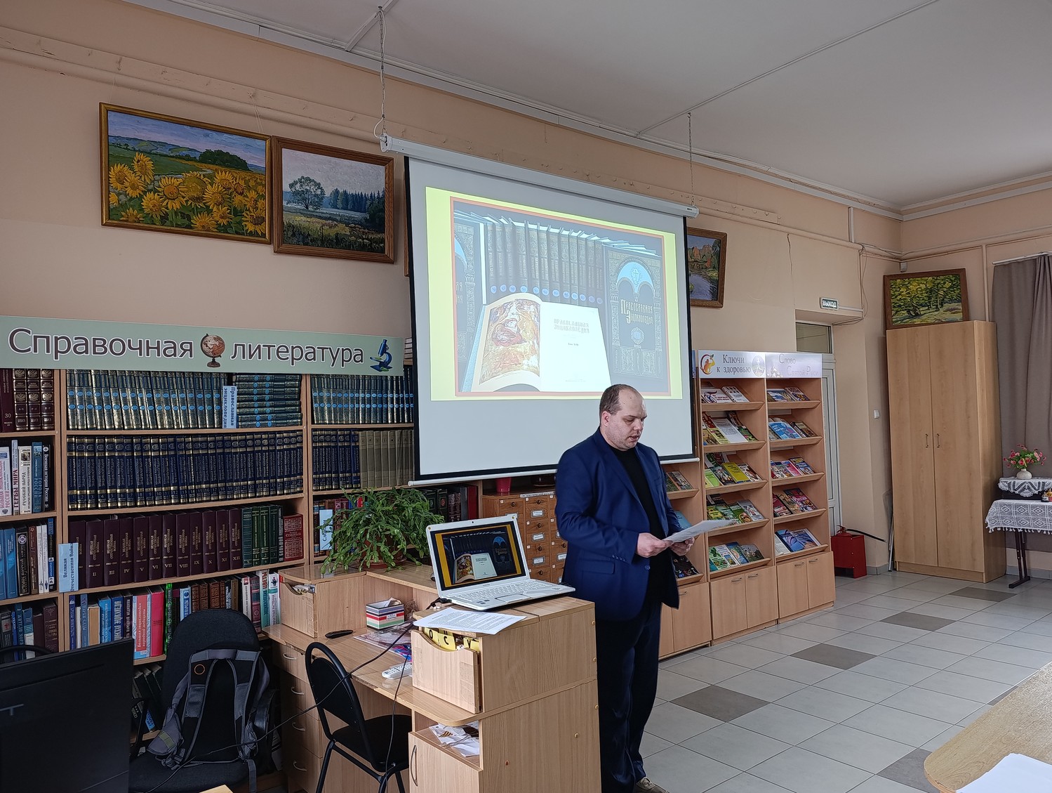 В рамках проведения Димитровских чтений для педагогов Октябрьского района в читальном зале библиотеки был проведен один из блоков «Путь к пониманию: православная энциклопедия для педагогов» о духовном и нравственном воспитании молодого поколения. Специалист библиотеки Гончаров В.Е. познакомил присутствующих с уникальным пособием — «Православная энциклопедия», выпущенным под редакцией Святейшего Патриарха Московского и всея Руси Кирилла. Это издание собрало ценные материалы, охватывающие разнообразные аспекты православия, русской культуры и истории. Издание представляет собой полноценный источник глубоких знаний, необходимых для формирования представления о нашем национальном достоянии и духовно-нравственном развитии.