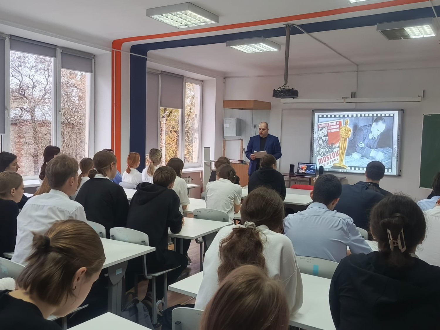 Накануне Дня воинской славы России для учащихся старших классов школы №23 пос. Красногорняцкий специалистом библиотеки Гончаровым В.Е. был подготовлен и проведён тематический урок «Парад 1941 года: несломленный рубеж Москвы», посвящённый историческому параду на Красной площади.