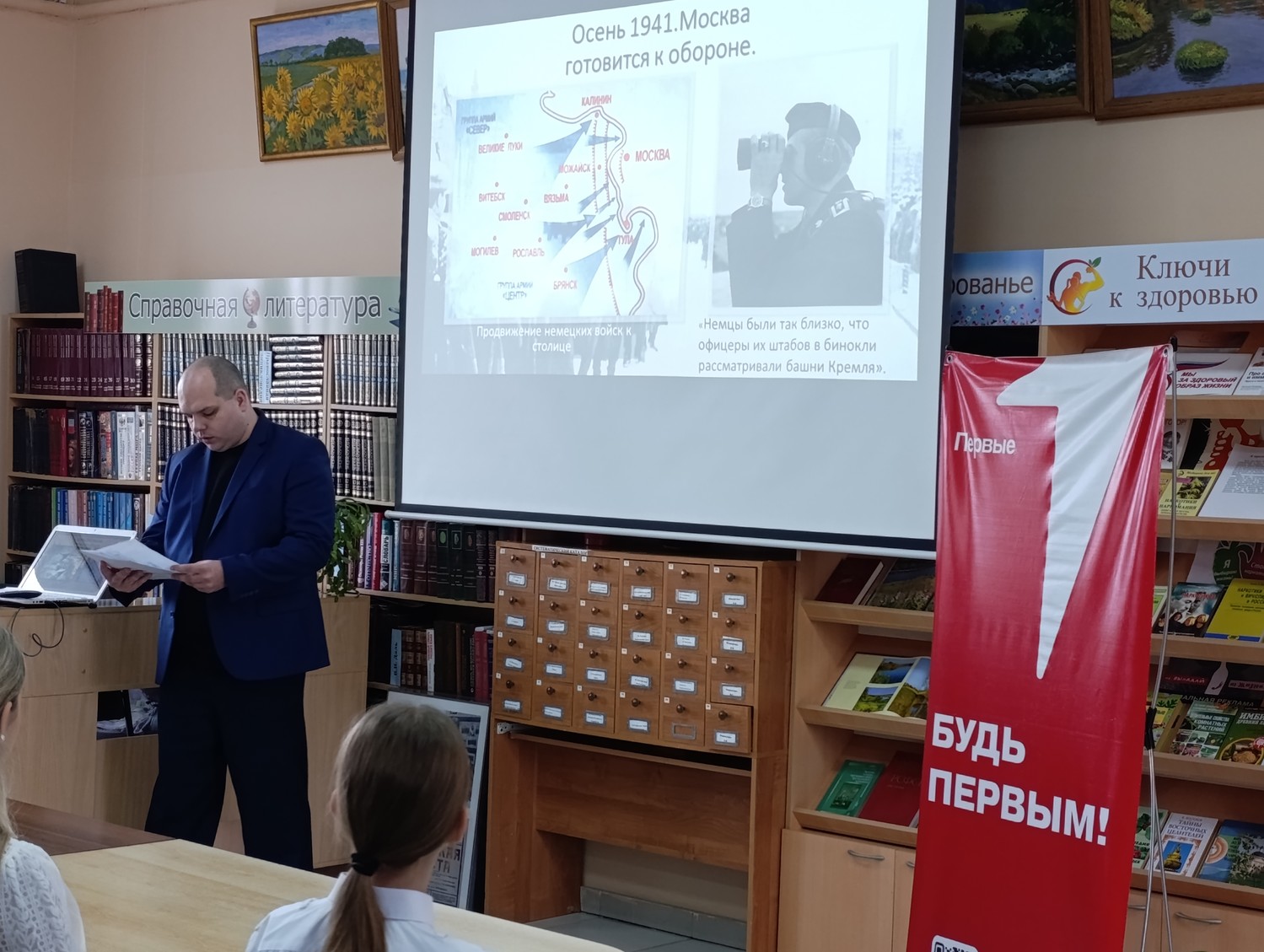 5 ноября 2025 года активисты Совета Первых местного отделения Движения Первых Октябрьского района приняли участие в специальном мероприятии «Парад 1941 года: несломленный рубеж Москвы», организованном сотрудником Межпоселенческой центральной библиотеки Валерием Гончаровым.