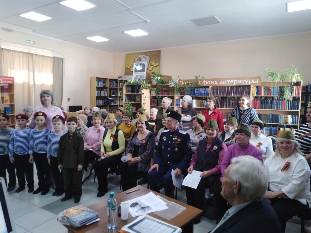Эту встречу библиотекари Межпоселенческой центральной библиотеки посвятили Году защитника Отечества и тем, кто защищал нашу Родину от врага, тем, кто освободил Октябрьский район, г. Шахты, г. Ростов-на-Дону в феврале 1943 года от немецко-фашистских захватчиков.