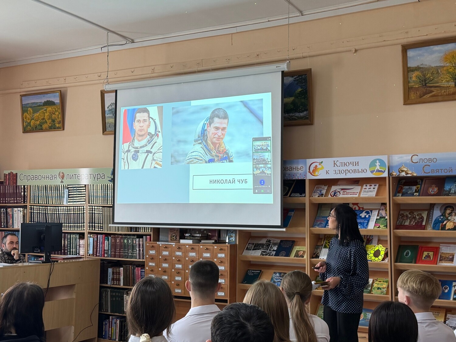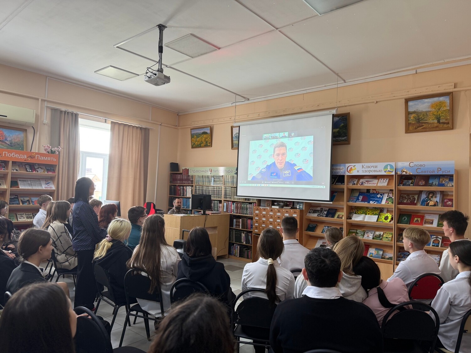 Наша библиотека, известная как центр притяжения для образовательных и просветительских инициатив, предоставила комфортные условия для организации масштабного и запоминающегося мероприятия - встречу в формате видео моста с настоящим героем – космонавтом, Героем Российской Федерации Николаем Александровичем Чубом.